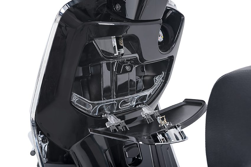 De nieuwe elegante Like heeft een schitterend uiterlijk vol prachtige accenten en een comfortabel lederen-look zitting wat een unieke luxueuze beleving geeft aan al uw scooter ritjes.