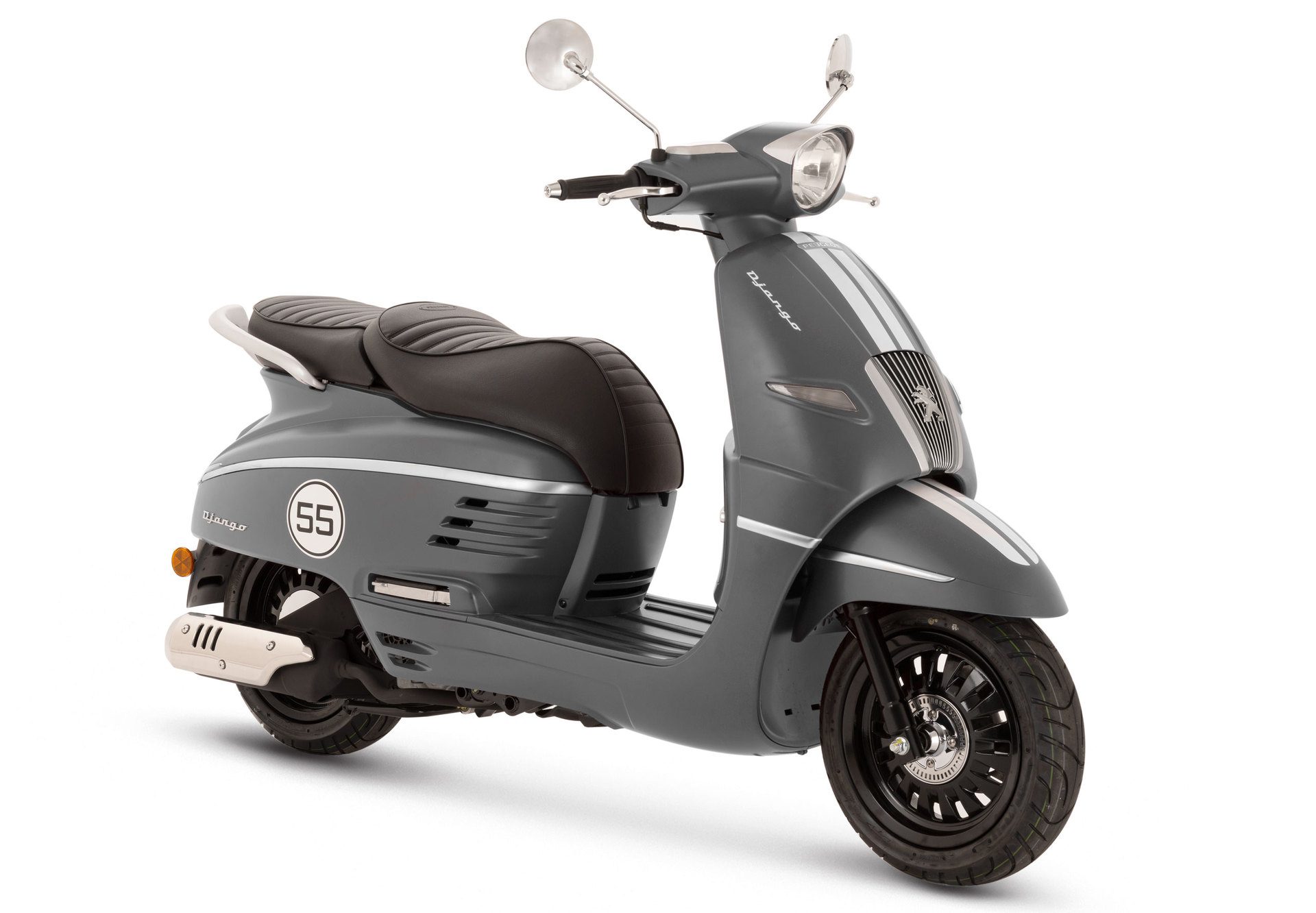 Uitzonderlijk mooi, elegant en chique. Geen twijfel mogelijk, met de Peugeot Django scooter kun je voor komen rijden. Het retro-karakter van deze Peugeot scooter blijkt ook uit de mooie welvingen, geïnspireerd op de verfijnde lijnen van het klassieke Peugeot model S57C. Hoewel zijn looks trouw blijven aan het erfgoed van het merk, zit de Django boordevol moderne technologieën: LED-verlichting, een 12 volt oplaadaansluiting voor gadgets en een semi-digitaal dashboard met boordcomputer. Je begrijpt het al, dit is de scooter voor morgen met de finesse van toen. Dankzij de lage zithoogte en de ruime en vlakke vloerplaat van de Django rijdt hij comfortabel ongeacht de grootte van de rijder.